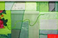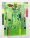 Mediumfabric, konnyaku-treated momigami paper, ink, sequins, fringe